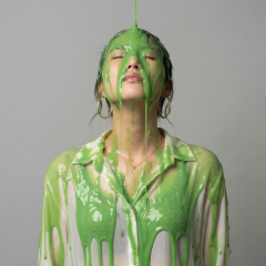 After footage includes The Wife taking a recycled sliming made from everything we used in the shoot, put into a bucket, and dumped on her head. She then plays with her bare feet in the muck. Lastly, she gets handfuls of slop poured into her hair over and over again.